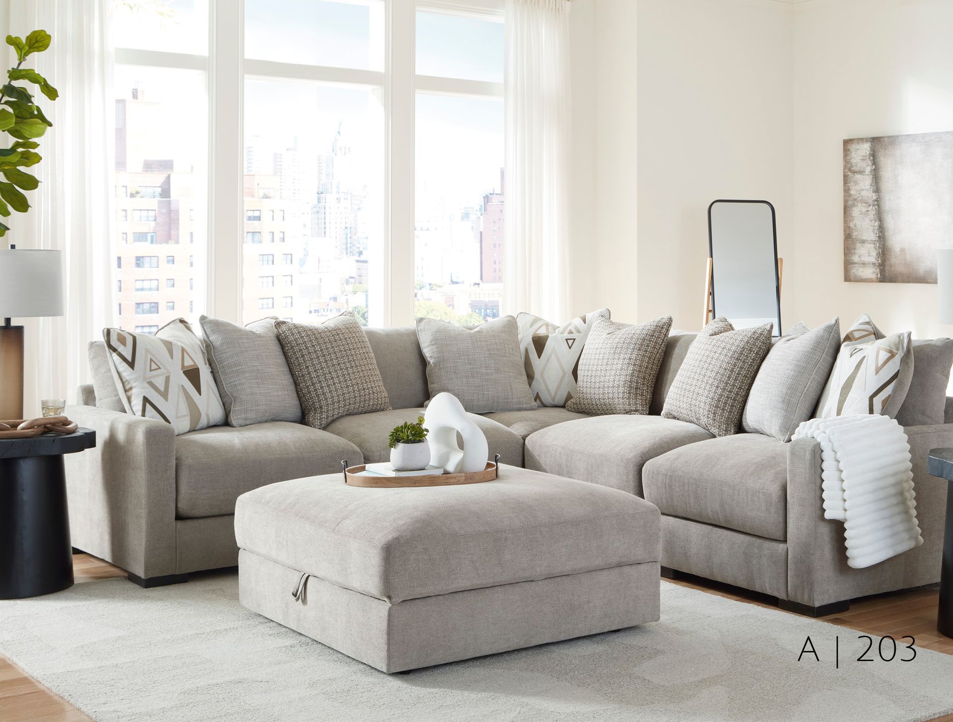 Discover the beauty and craftsmanship of Alexvale, an exceptional custom furniture line made in the U.S. Alexvale pieces are designed with both style and comfort in mind, offering a variety of fabric choices and configurations to suit your unique taste. Each piece is built to last, with quality materials and a dedication to attention to detail that will make your living space truly one-of-a-kind. Below are a few example photos to inspire your living room creation. Browse through these ideas and start imagining your perfect space today!